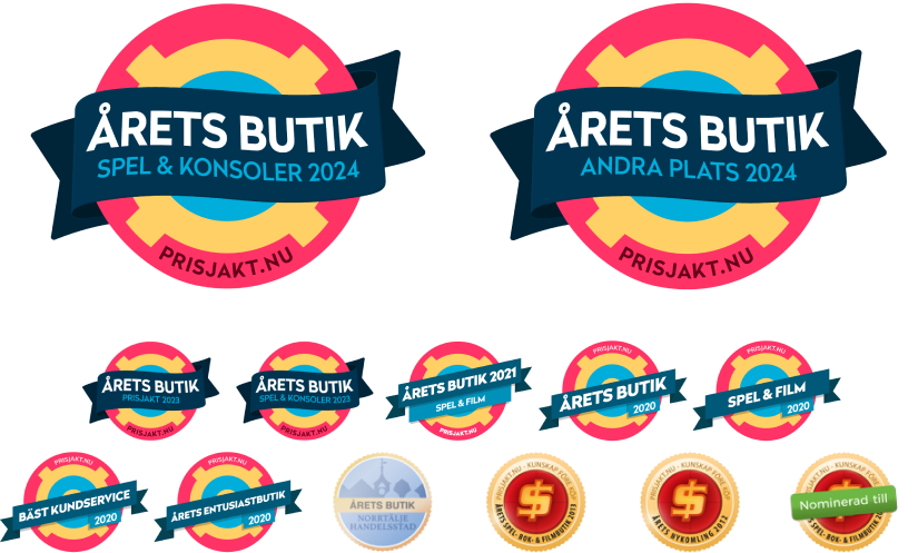 Vi tar Spel & Sånt med största möjliga kärlek & allvar och gör alltid vårt yttersta för att våra kunder ska bli nöjda när de handlar av oss. Som ett litet bevis på vårt goda arbete, så har vi genom åren samlat på oss lite utmärkelser, att de flesta av dessa priser dessutom kommer från att vi har höga kund omdömen snarare än proffsjuryn njuter vi extra mycket av. Första utmärkelsen vi fick var Årets Butik i Norrtälje 2012 och det största priset var nog när vi tog hem grand slam på Prisjakt 2020 och inte bara vann den stora utmärkelsen Årets Butik utan även Årets Spel/Film butik, Årets entusiastbutik och årets kundtjänst. Det var första gången någonsin ett företag lyckades vinna så många som fyra priser samma år.